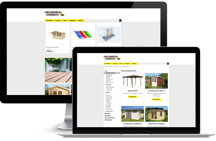 Für den Holzmarkt Chemnitz, mit 2 Filialen in Chemnitz, layouteten und programmierten wir eine völlig neue Webseite. Als Highlight legten wir ein kleines Shopmodul an, um so dem geplanten Launch in das Online-Geschäft einfacher zu gestalten.