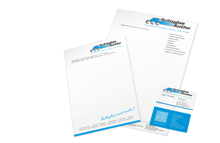Für das Team von Autoglas Kothe entwickelten wir nach dem Redesign des Firmenlogos, die dazugehörige Geschäftsausstattung.