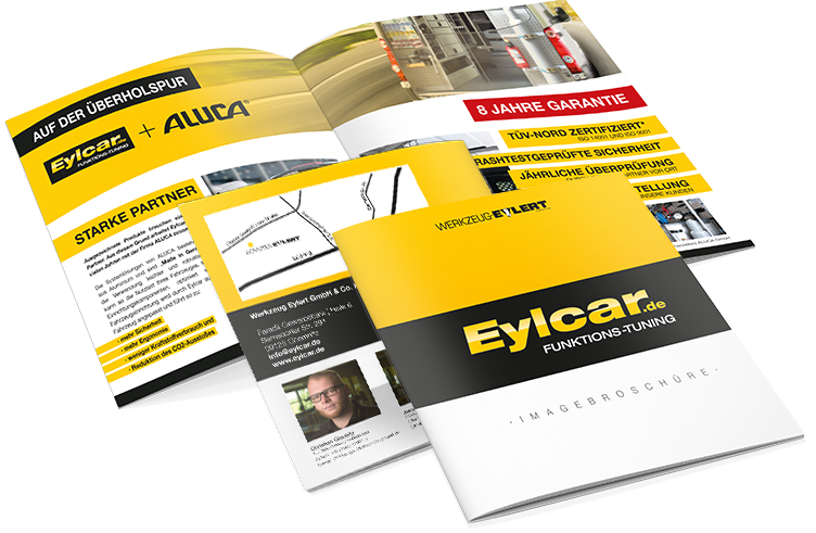 Für die Fachsparte Eylcar der Werkzeug-Eylert GmbH & Co. KG fertigten wir eine hochwertige Imagebroschüre im quadratischen Format.