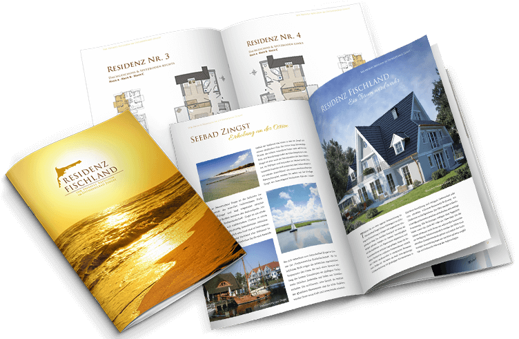 Ein hochwertiges 24-seitiges Exposé aus der Feder von vogeldesign, welches durch seine Gestaltung und Bildsprache zum Wohnen und Leben im Ostseeheilbad Zingst einläd.